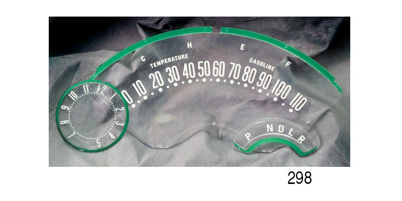 All numbers and letters are recessed on the back side and painted white. Edges of the lenses are painted green to transmit color to the letters when backlit, just like Chevy produced them in 1955, 1956 and 1957. Danchuk # 298 will work on any 1955-1956 classic Chevy with a powerglide transmission. Made in the United State of America. Please note all lenses are clear.